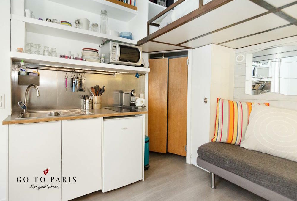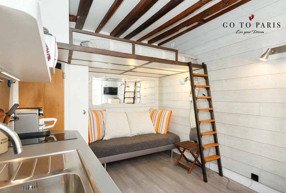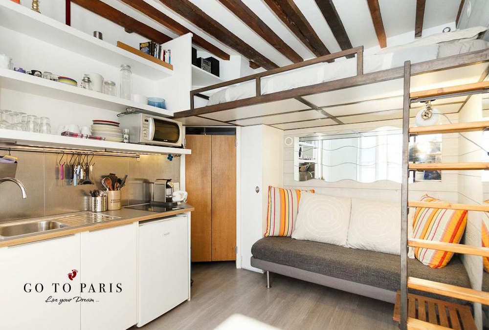 Bo i charmiga 5 arrondissementet – det här är en populär lägenhet för 1 person. Lägenheten har ett vardagsrum med en soffa, bord, stolar, TV, fönster. Loft med en säng. Öppet kök. Badrum med dusch, handfat och wc. Wifi-internet, handdukar, sänglinne, fullt möblerad.