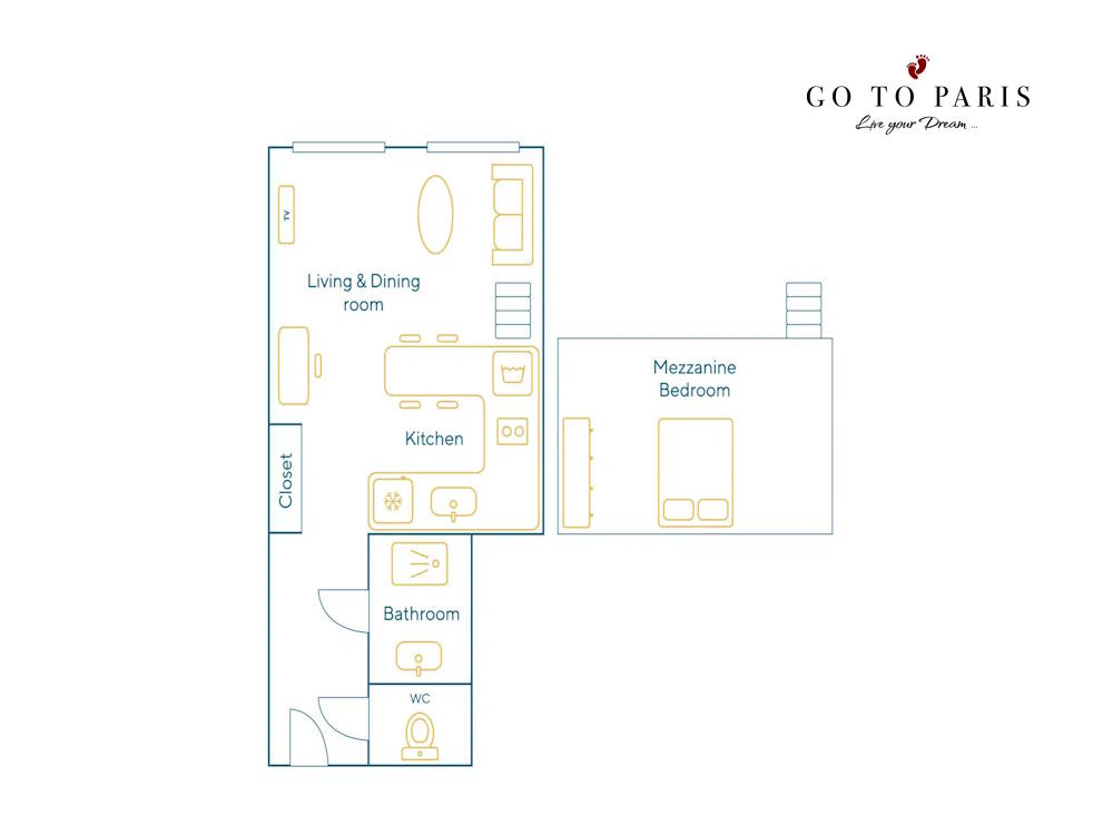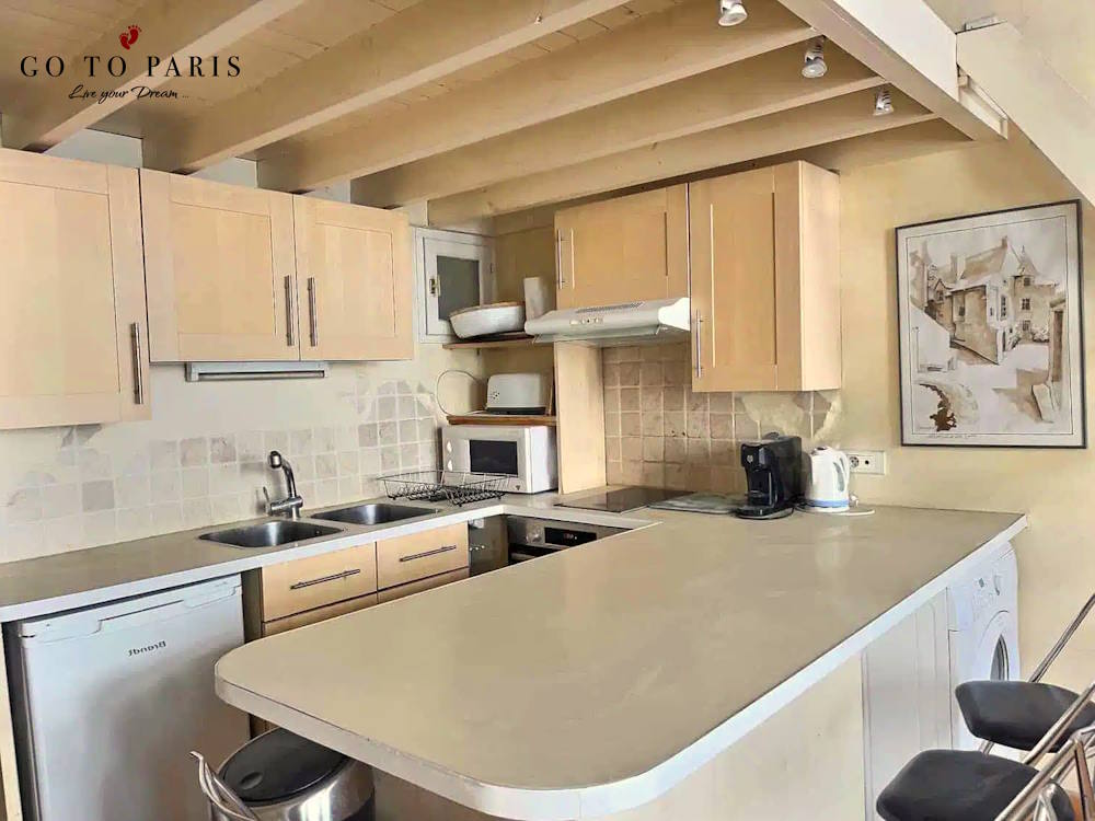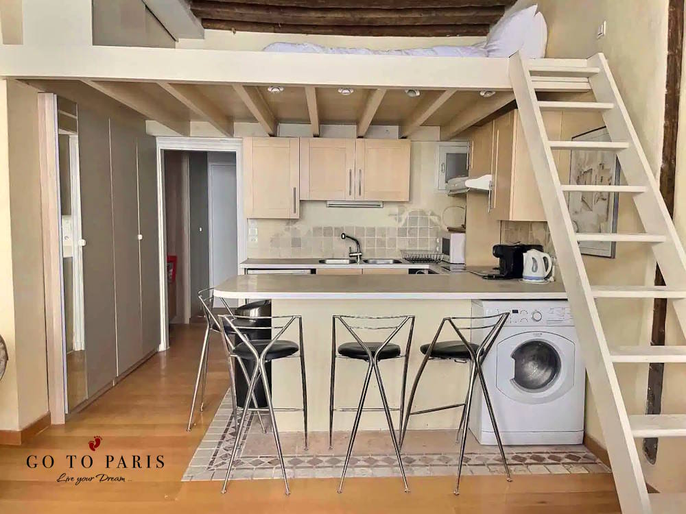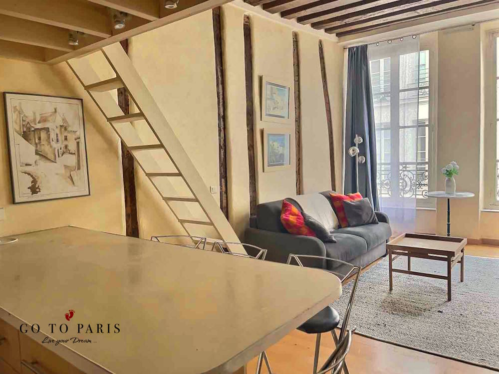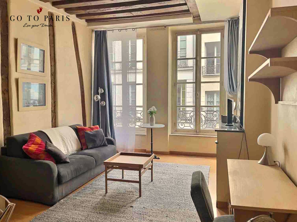Bo i charmiga 4 arrondissementet! Det här är en hemtrevlig lägenhet för upp till 3 personer som ingår i “Best Choice Collection”. Vardagsrum med en bäddsoffa, bord, stol, barstolar, TV, fönster. Fullt utrustat öppet kök. Sovloft med en dubbelsäng. Badrum med handfat, spegel, dusch, wc. WiFi-internet, tvättmaskin, sänglinne, handdukar, fullt möblerad.