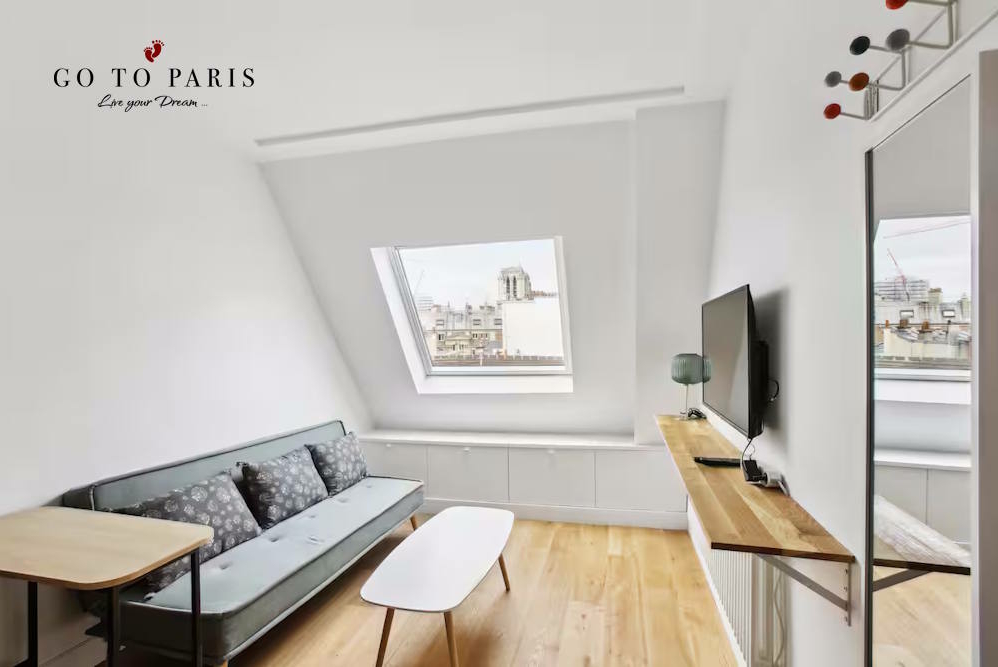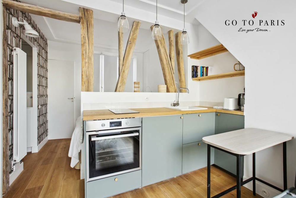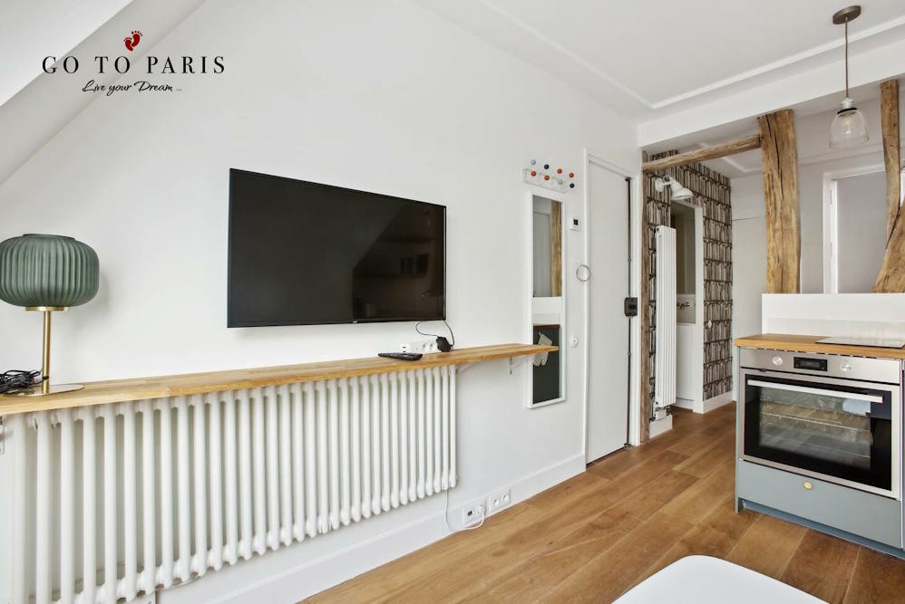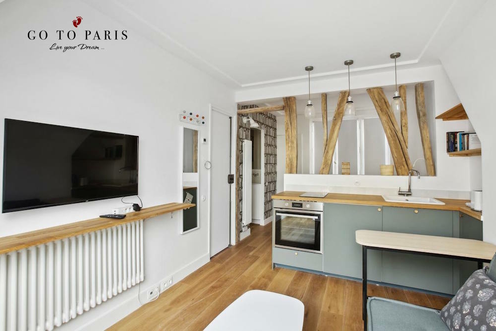 Bo i charmiga 5 arrondissement – det här är en trevlig lägenhet för upp till 3 personer. Lägenheten har ett vardagsrum med en bäddsoffa, soffbord, TV, fönster. Fullt utrustat öppet kök. Sovrummet har en dubbelsäng, fönster. Badrum med dusch, handfat och wc. Wifi-internet, tvättmaskin, handdukar, sänglinne, fullt möblerad. Vi kallar lägenheten för “två rum och kök” men man kan även kalla boendet för en studio med en sovalkov då det är en öppen planlösning.