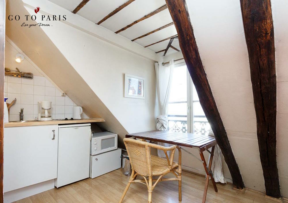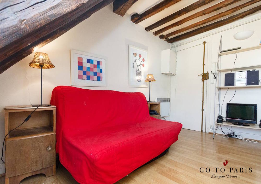 Bo i det trevliga 3 arrondissementet – mysig lägenhet för upp till 2 personer. Lägenheten har ett vardagsrum med en bäddsoffa, bord, stol, TV, skåp, fönster. Öppet kök/kitchenette. Badrum med dusch, handfat och wc. Wifi-internet, handdukar, sänglinne, fullt möblerad.