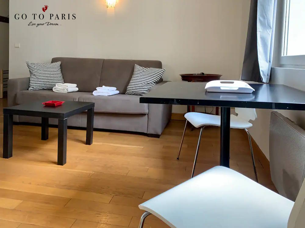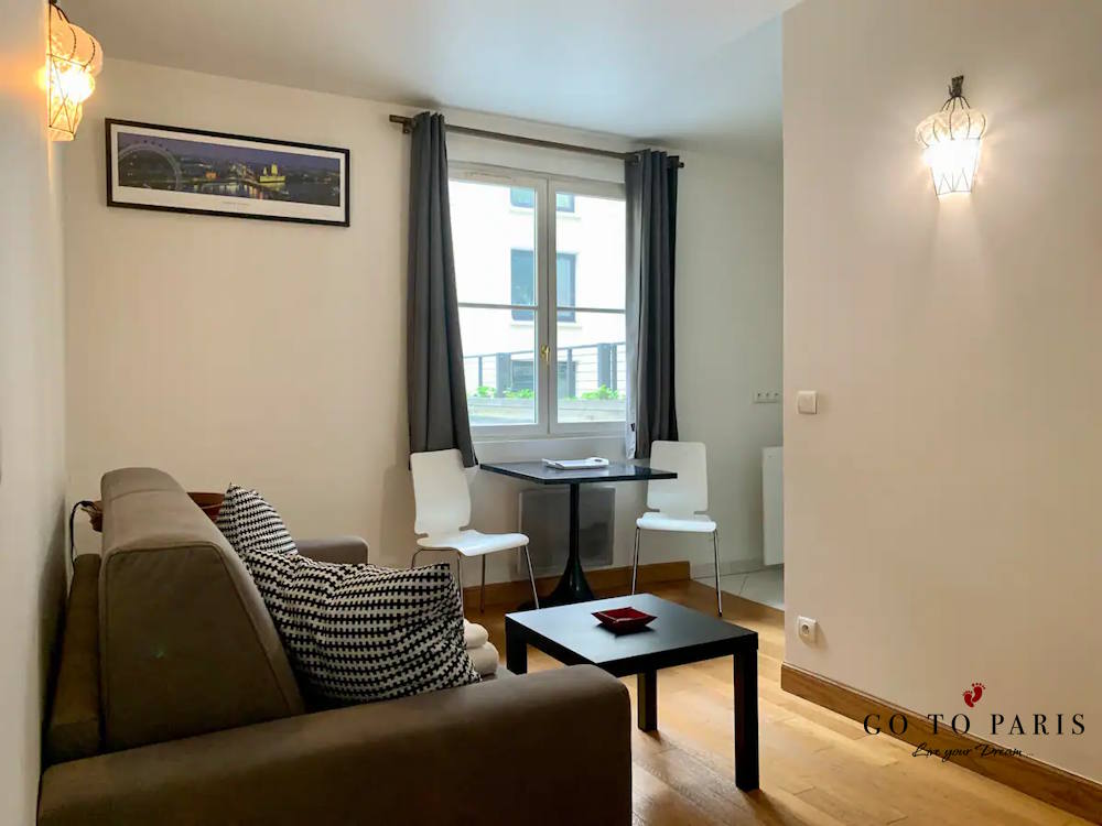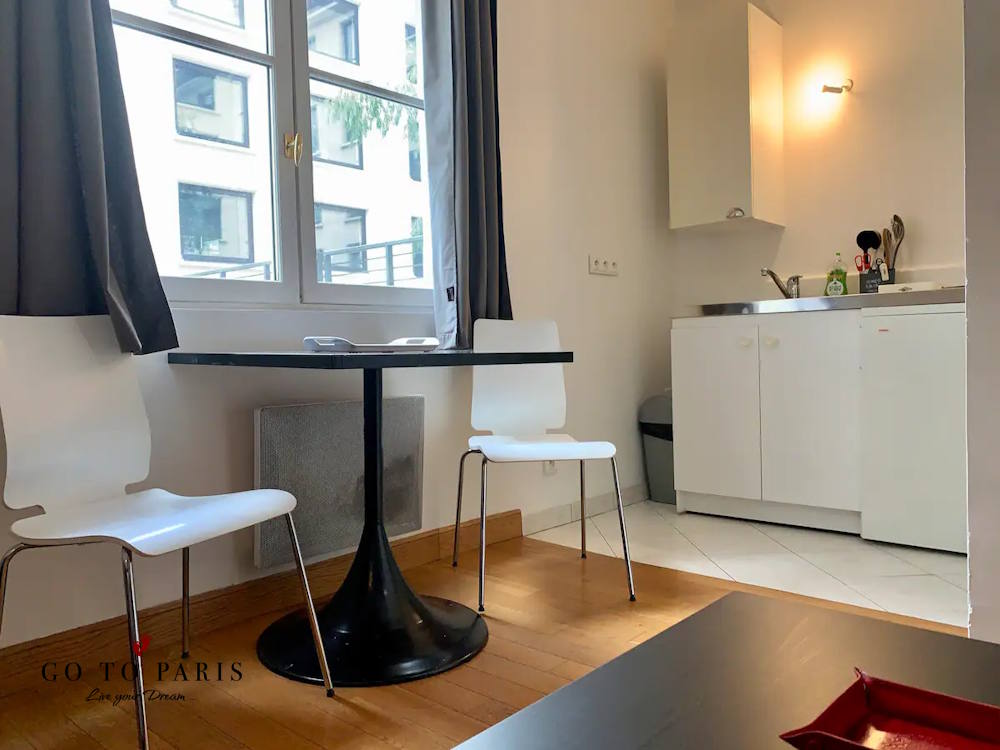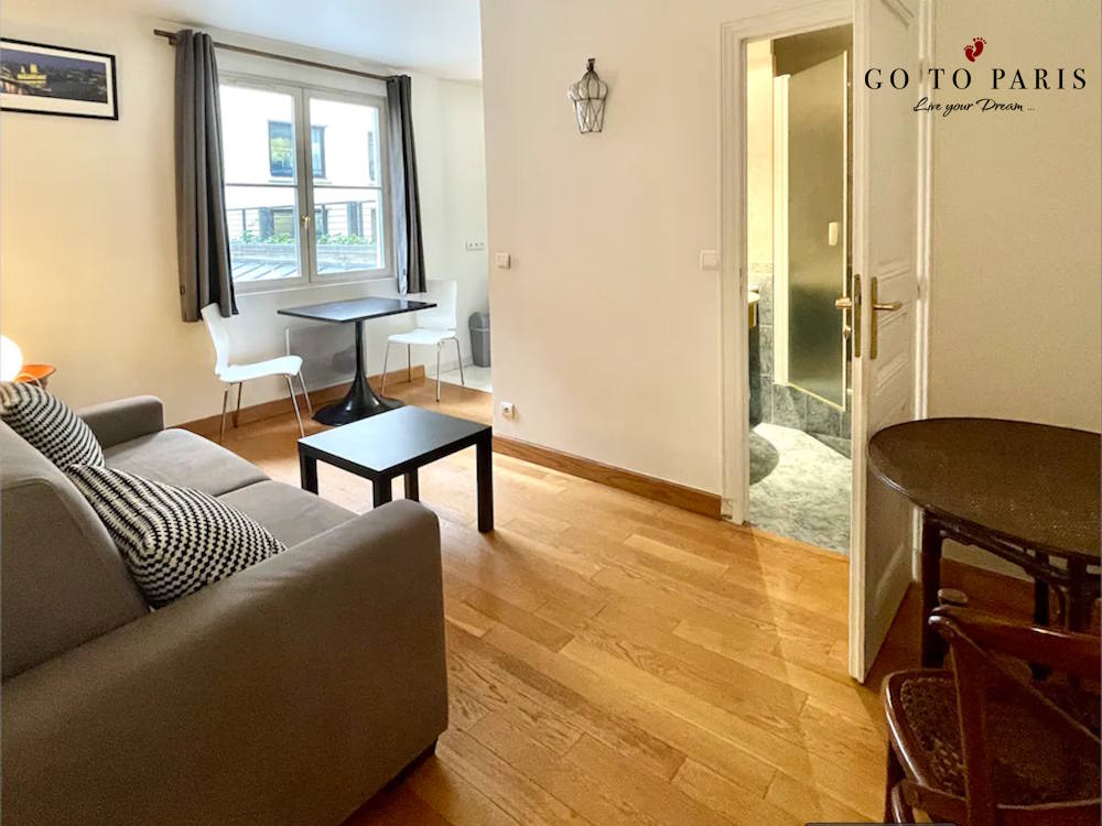 Bo i populära 2 arrondissementet – det här är en lite enklare lägenhet för upp till 2 personer i ett mycket centralt läge. Lägenheten har ett vardagsrum med en bäddsoffa, bord, stolar, fönster. Öppet kök. Badrum med dusch, handfat och wc, handdukar, sänglinne, fullt möblerad.