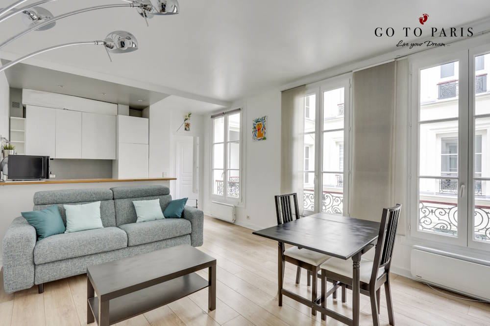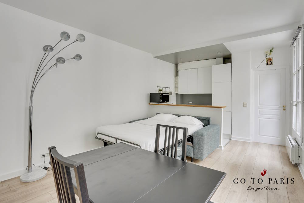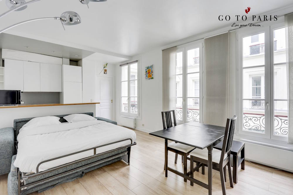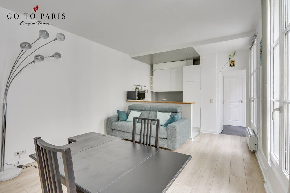 Bo “mitt i stan” i livliga 1 arrondissement – det här är en fräsch lägenhet som rymmer upp till 4 personer. Lägenheten har ett vardagsrum med en bäddsoffa, bord, stolar, fönster. Fullt utrustat öppet kök. Sovrum med en dubbelsäng, fönster. Badrum med dusch, handfat och wc. Wifi-internet, tvättmaskin, handdukar, sänglinne, fullt möblerad.