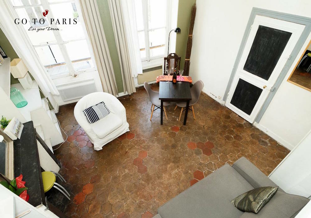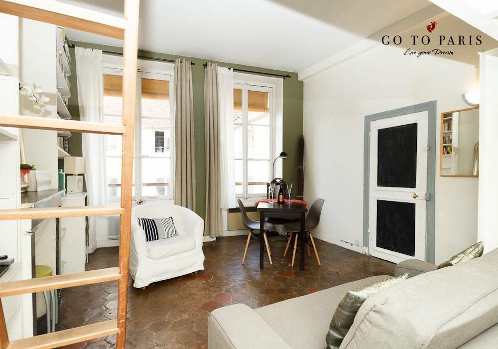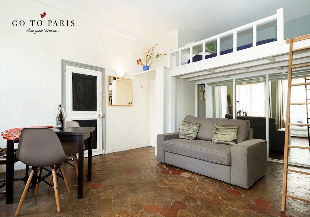 Bo i det trevliga 3 arrondissementet – det här är en populär lägenhet för upp till 2 personer med ett mycket bra läge. Lägenheten har ett vardagsrum med en bäddsoffa, bord, stolar, TV, fönster. Loft med en dubbelsäng. Fullt utrustat kök. Badrum med dusch, handfat och wc. Wifi-internet, tvättmaskin, handdukar, sänglinne, fullt möblerad.