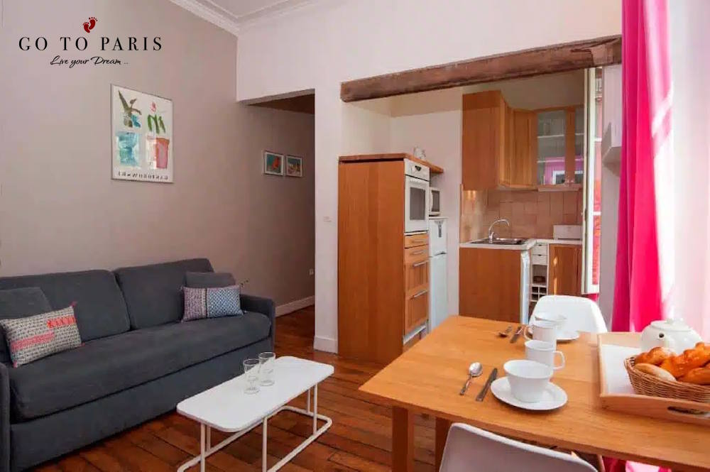 Bo “mitt i stan” i livliga 1 arrondissement – det här är en hemtrevlig lägenhet som rymmer upp till 3 personer och ingår i “Best Choice Collection”. Lägenheten har ett vardagsrum med en bäddsoffa, soffbord, TV, bord, stolar, fönster. Fullt utrustat öppet kök. Sovrum med en dubbelsäng, fönster. Badrum med dusch, handfat och wc. Wifi-internet, tvättmaskin, handdukar, sänglinne, fullt möblerad.