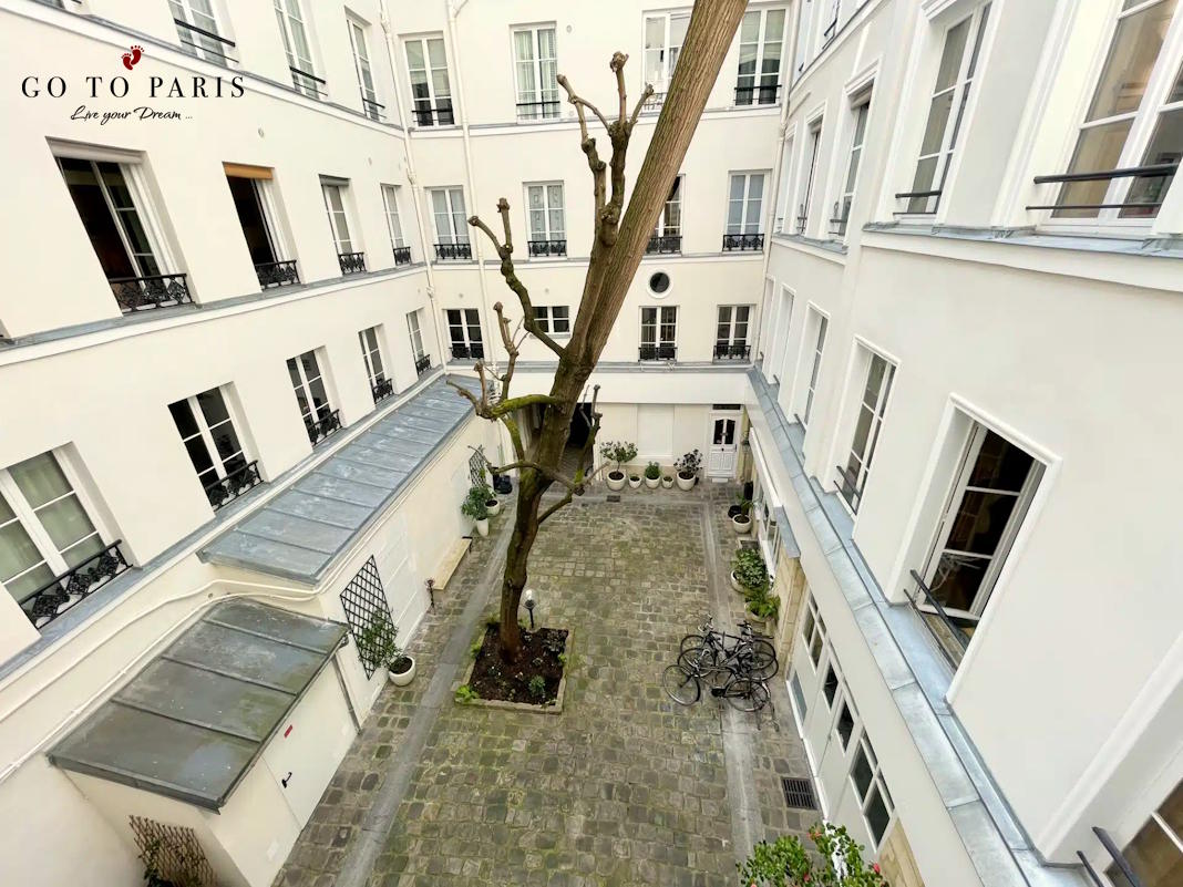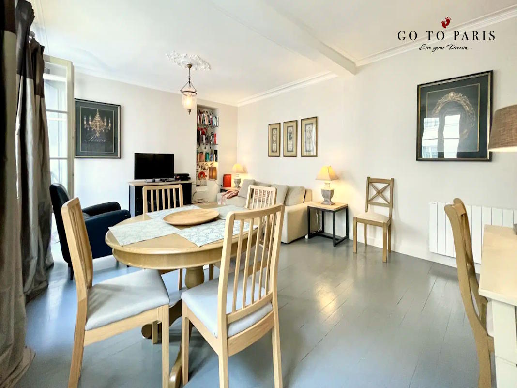 Lägenheten ligger på Rue Rambuteau som ligger i 3:e arrondissementet i Paris, mellan områdena Le Marais och Beaubourg. Gatan är bred och livlig, kantad av butiker, bagerier, caféer och restauranger. Den skapades under 1800-talets stadsomvandlingar och är idag en populär shopping- och promenadgata. För turister är Rue Rambuteau särskilt attraktiv tack vare närheten till Centre Pompidou, ett av stadens mest kända museer för modern konst. Här kan besökare njuta av en livlig parisisk atmosfär mitt i stadens historiska centrum.