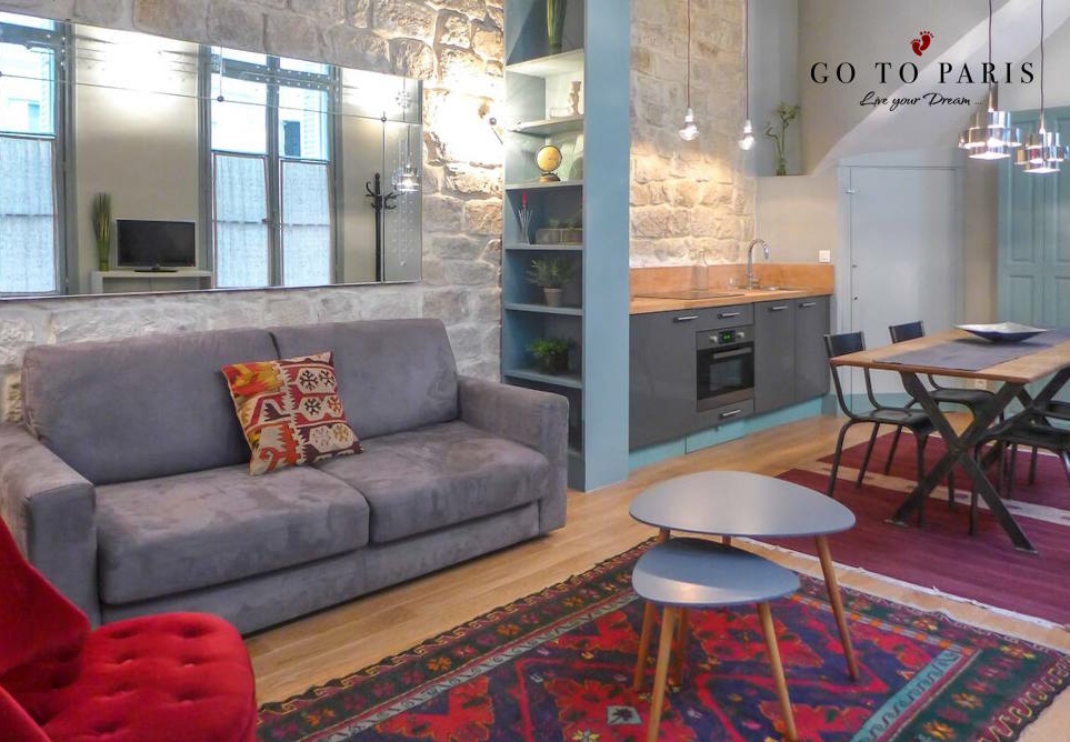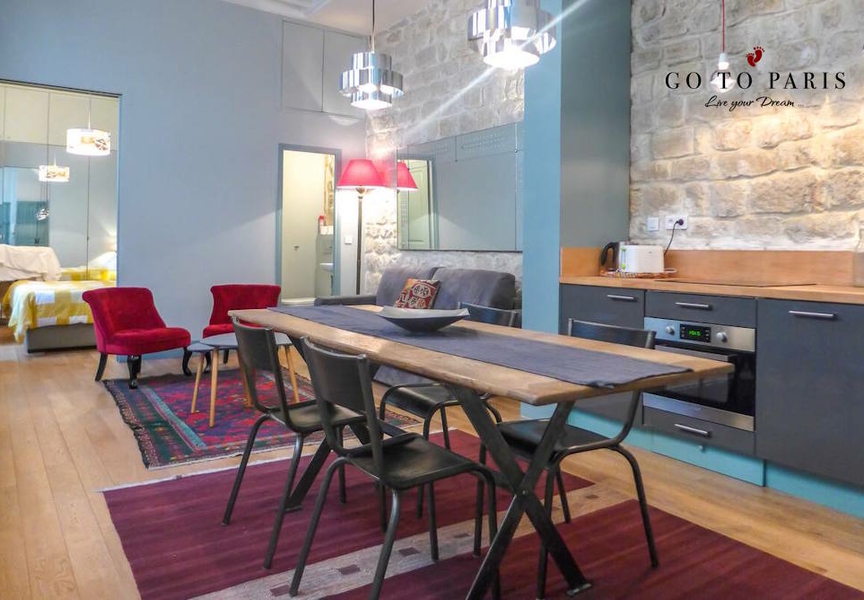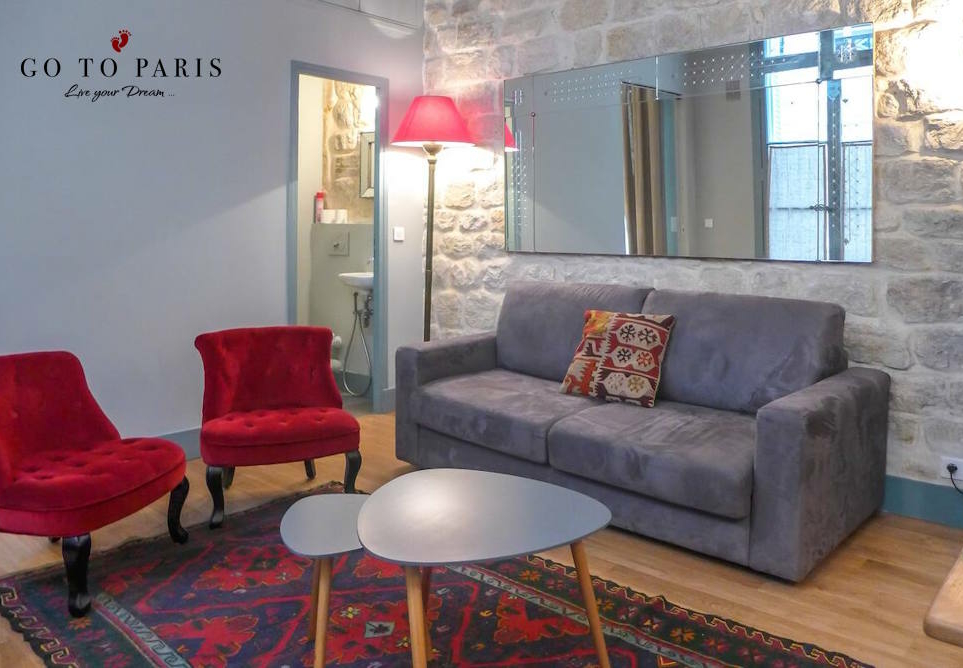 Bo i charmiga 4 arrondissementet! Det här är en charmig lägenhet för upp till 3 personer. Vardagsrum med en bäddsoffa, bord, stolar, TV, fåtöljer, fönster. Fullt utrustat öppet kök. Sovrummet har en dubbelsäng, garderob, fönster. Badrum med handfat, spegel, dusch, wc. WiFi-internet, tvättmaskin, sänglinne, handdukar, fullt möblerad.